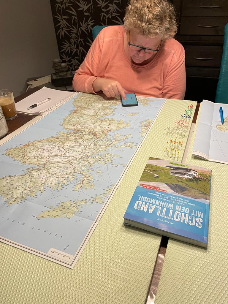 Es wurden Reiseberichte geschaut, Reiseführer gewälzt und Internetseiten durchforstet. Es gab sehr viele schöne Punkte, welche wir uns für einen Besuch ausgesucht hatten. Wir besorgten uns eine Platte Styrodur, eine Straßenkarte von Schottland sowie Stecknadeln mit einem bunten Kopf.